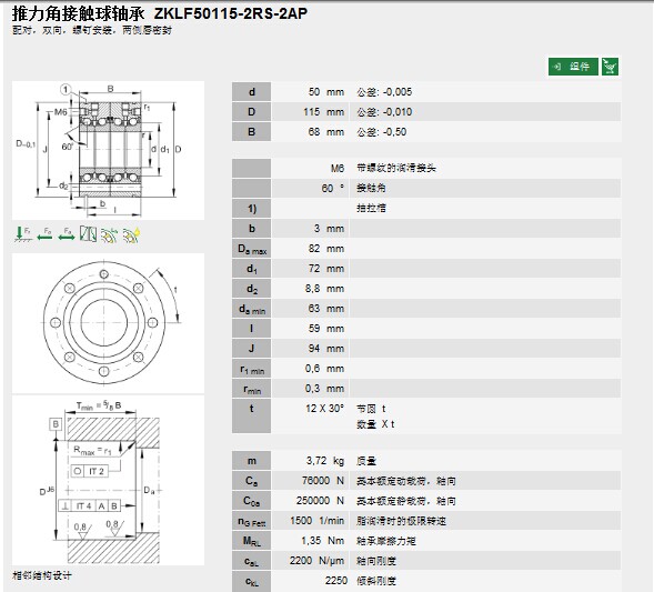 | 軸承型號(hào): | ZKLF50115-2RS-2AP | |
