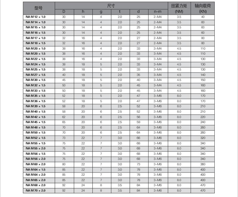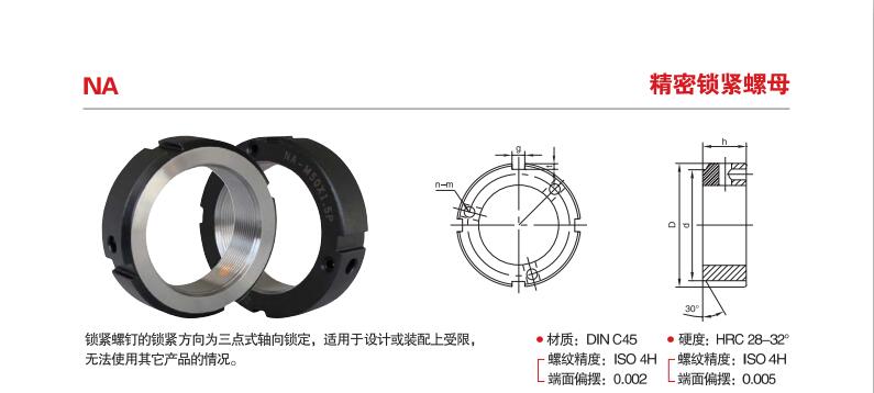 用途:NUT精密鎖緊螺母因其能有效提高組裝精度,改善主軸撓,安裝簡(jiǎn)單,不易松脫,并延長(zhǎng)工件使用壽命,而被廣泛應(yīng)用于需要精密 強(qiáng)力 安全鎖緊的精密機(jī)構(gòu)上。